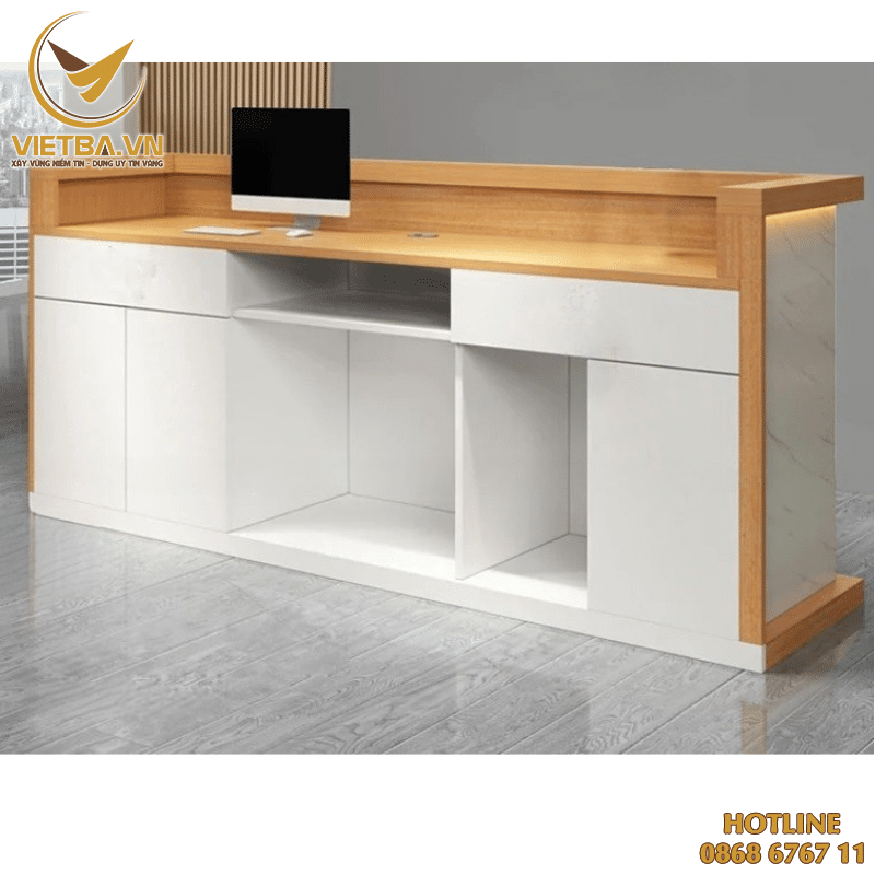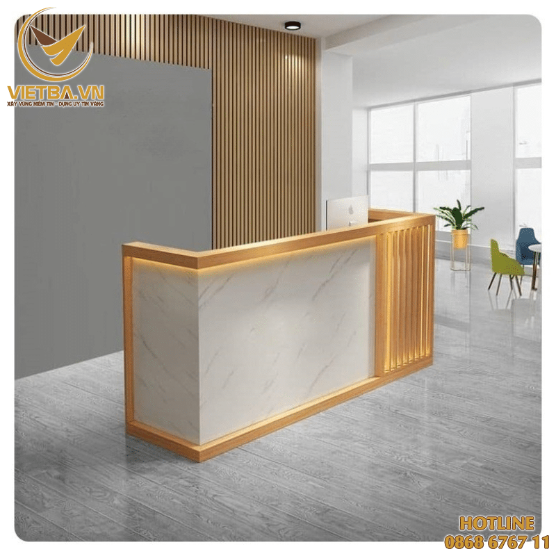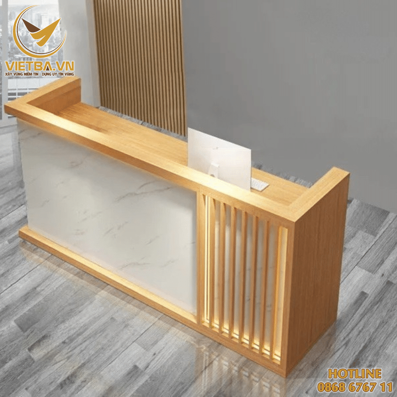 - Bàn lễ tân gỗ hiện đại, thiết kế tiện dụng với người dùng.