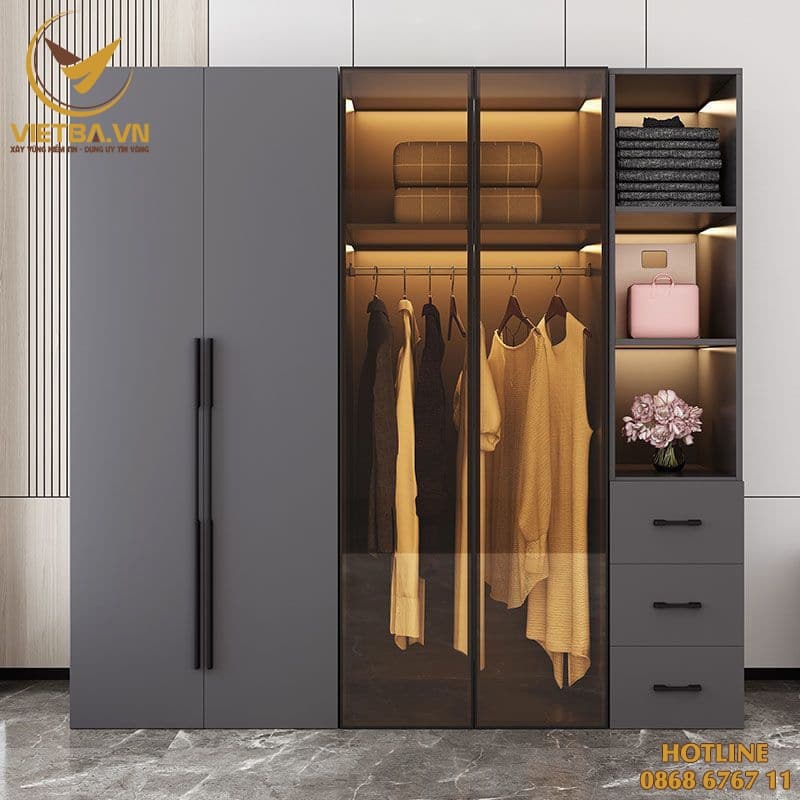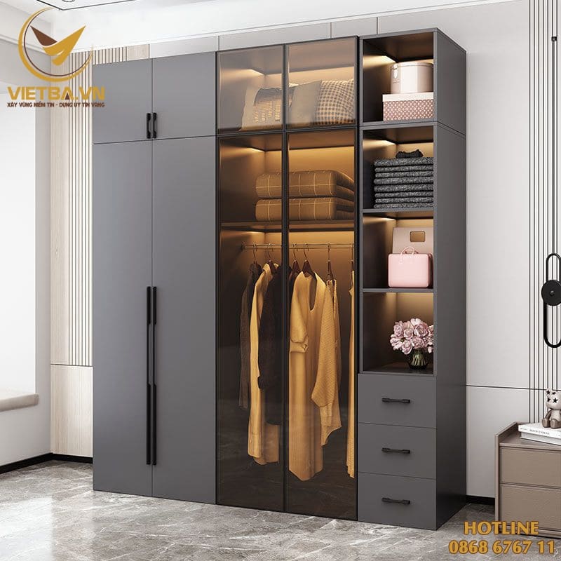 Khi mua mẫu tủ quần áo kính có đèn sang trọng V3-4617 tại Nội Thất Việt Ba