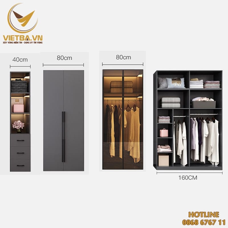 Tại nội thất việt ba bạn sẽ tha hồ lựa chọn các mẫu tủ quần áo mới, đẹp với giá cực tốt khu vực Hà Nội và lân cận. Ngoài bàn các mẫu tủ quần áo gỗ công nghiệp chúng tôi còn có các bàn ghế văn phòng: Combo phòng ngủ, Giường ngủ gỗ, Giường tầng sắt, Tủ quần áo gỗ cánh mở, Tủ quần áo cánh lùa , Tủ quần áo cánh kính , Tủ, Bàn trang điểm, Táp, Tủ đầu giường, Kệ, Tủ đựng giầy dép, Tủ rượu đẹp, Tủ, Kệ tivi, Kệ trang trí, Sofa văng, Bộ sofa góc, Sofa đơn, Sofa gỗ, Bàn kính, Bàn trà, Bộ bàn ghế ăn, Bàn ghế học sinh……đáp ứng toàn bộ nhu cầu về nội thất nhà xinh của bạn vì chúng tôi có xưởng sản xuất nội thất riêng biệt, đặt hàng theo kích thước mà bạn mong muốn. Hãy đến cửa hàng nội thất hà nội của chúng tôi để chọn mẫu mã và chất liệu theo yêu cầu khách hàng. Chắc chắn bạn sẽ chọn được mẫu sản phẩm phù hợp.