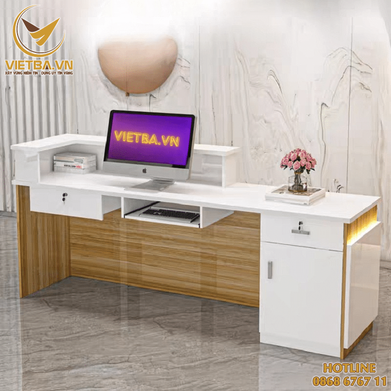 - Bàn lễ tân gỗ hiện đại, thiết kế tiện dụng với người dùng.
