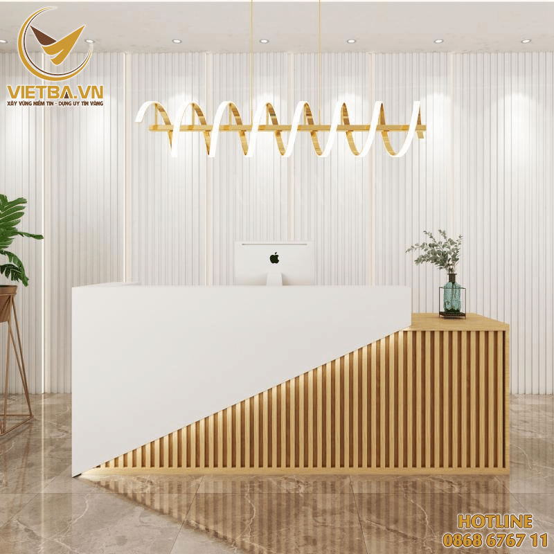 - Bàn lễ tân gỗ hiện đại, thiết kế tiện dụng với người dùng.