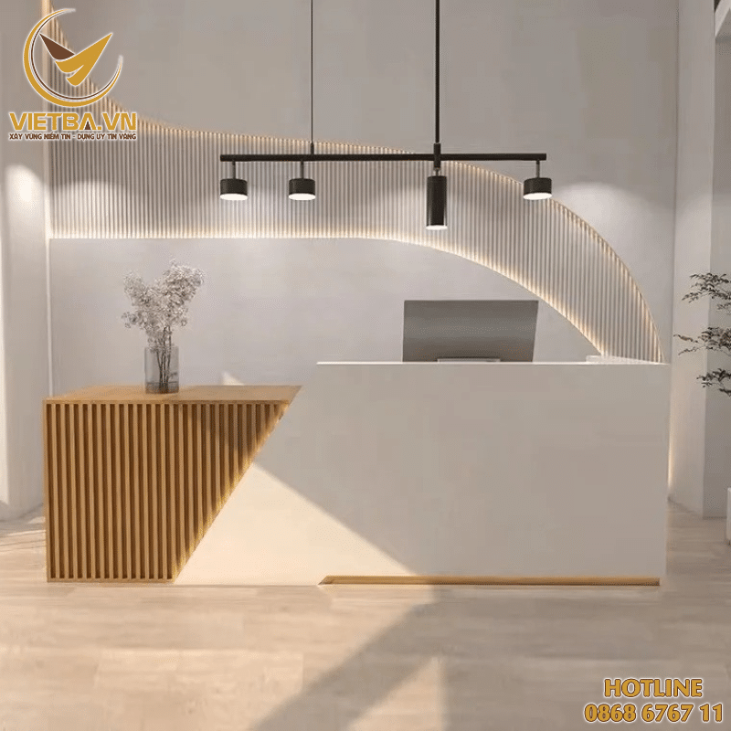- Bàn lễ tân gỗ hiện đại, thiết kế tiện dụng với người dùng.